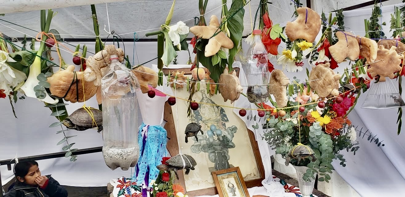 comunidad “sector 2” a hacer la procesión o recorrido alrededor del quiosco y de los puestos haciendo la bendición, donde los feligreses y las pequeñas comunidades van acompañando al párroco y al santísimo sacramento. Al igual varios puestos exponen a varios animales, por ejemplo: conejos, serpientes, tortugas, entre otros.